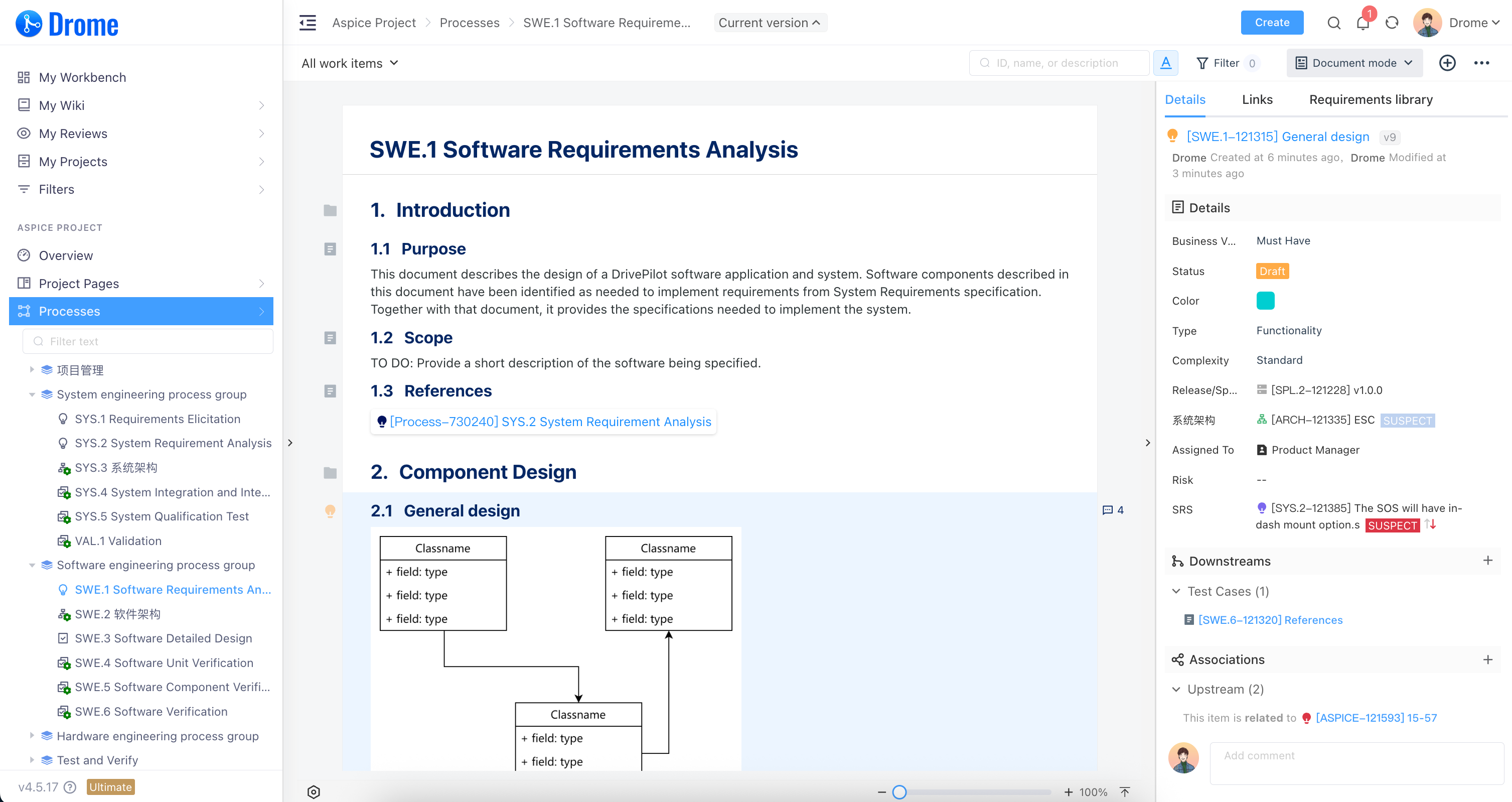 4. 内置敏捷、瀑布、V 字研发流程,以及汽车、医疗器械、航空军工等解决方案。